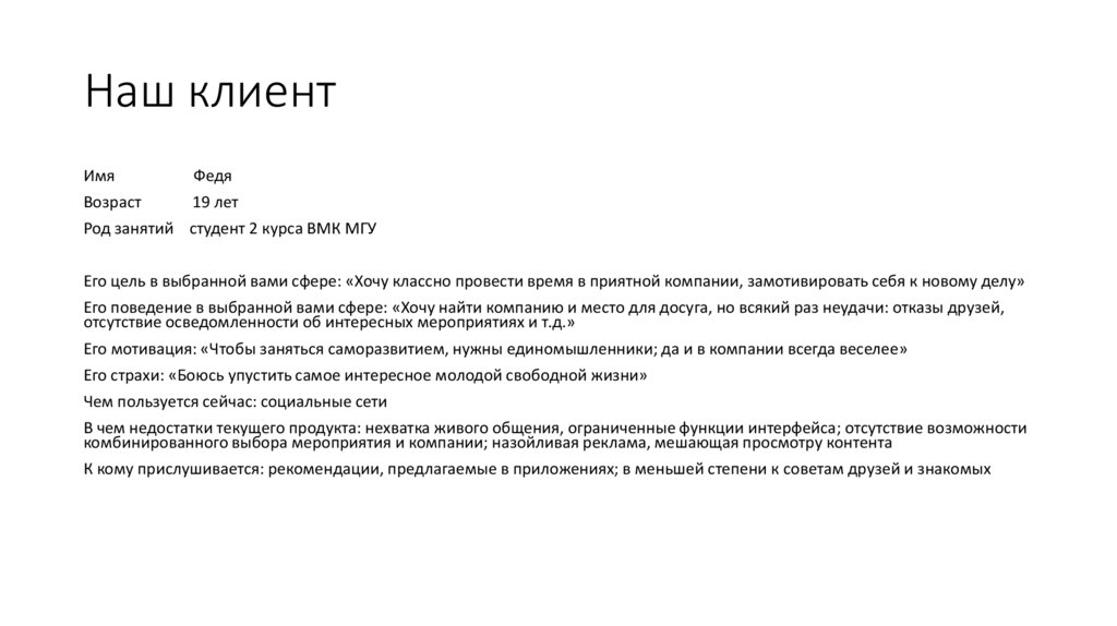 Наш клиентИмя