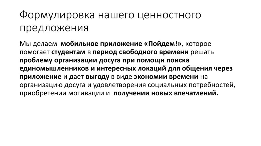 Формулировка нашего ценностногопредложения