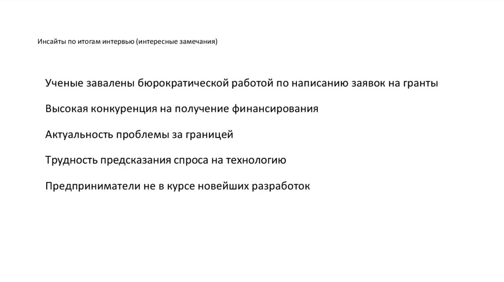Инсайты по итогам интервью (интересные замечания)Ученые завалены бюрократической работой по написанию заявок на гранты