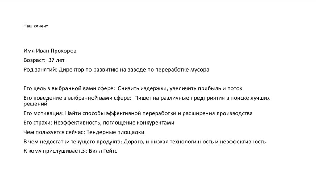 Род занятий: Директор по развитию на заводе по переработке мусора