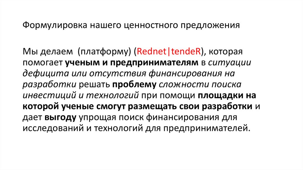 Формулировка нашего ценностного предложенияМы делаем (платформу) (Rednet|tendeR), которая