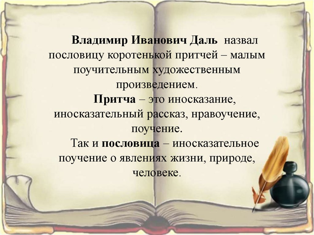 Владимир Иванович Даль назвалпословицу коротенькой притчей – малым