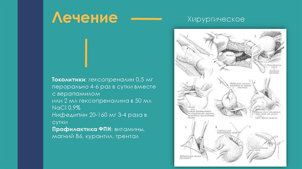 ЛечениеТоколитики: гексопреналин 0,5 мг