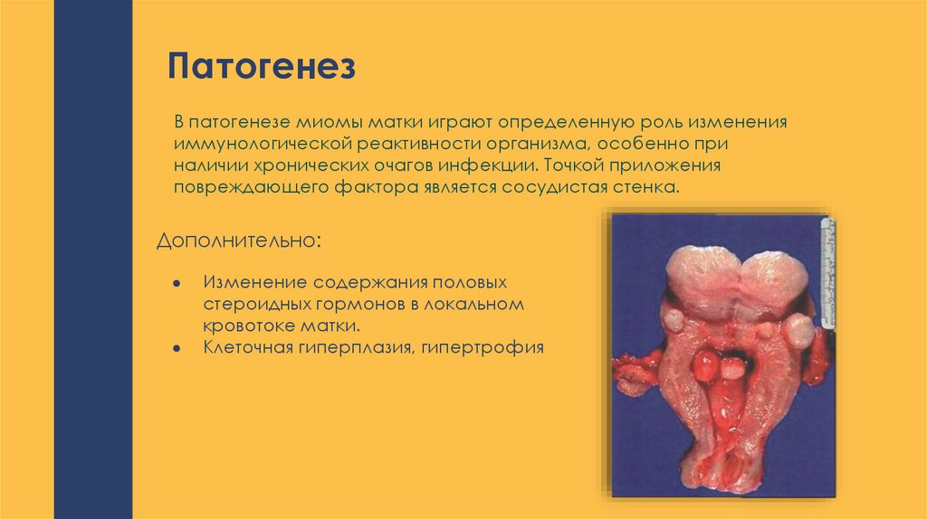 ПатогенезВ патогенезе миомы матки играют определенную роль изменения