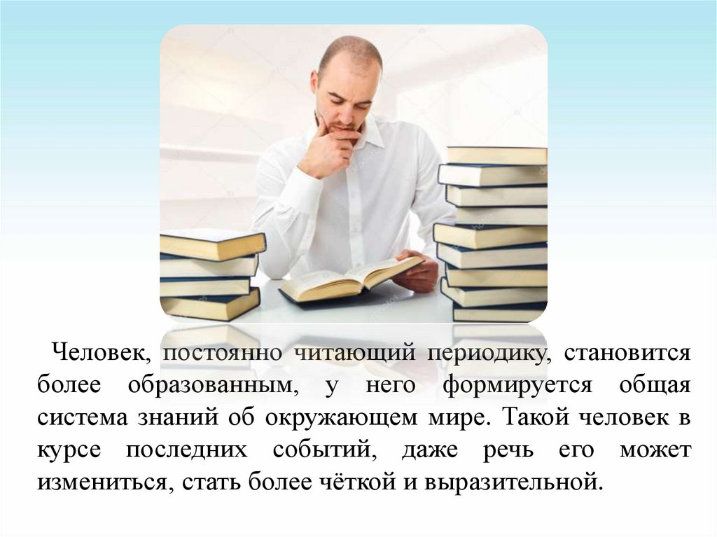 Человек, постоянно читающий периодику, становитсяболее образованным, у него формируется общая