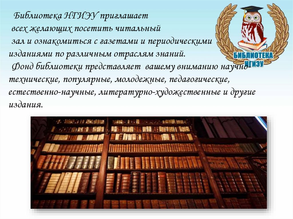 Библиотека НГИЭУ приглашаетвсех желающих посетить читальный