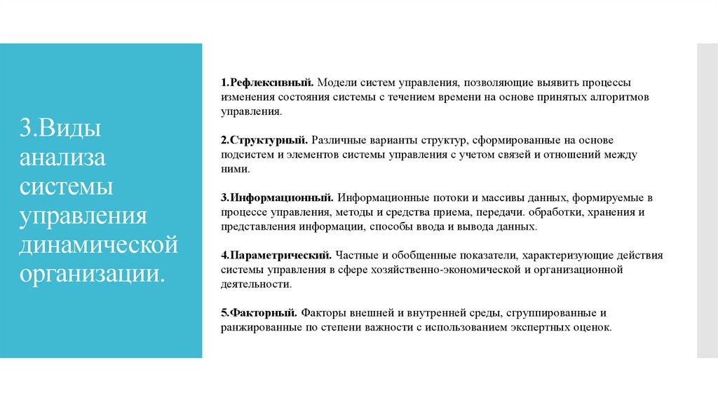 1.Рефлексивный. Модели систем управления, позволяющие выявить процессы