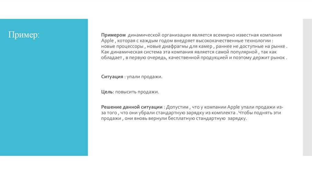 Решение данной ситуации : Допустим , что у компании Apple упали продажи изза того , что они убрали стандартную зарядку из комплекта . Чтобы поднять эти