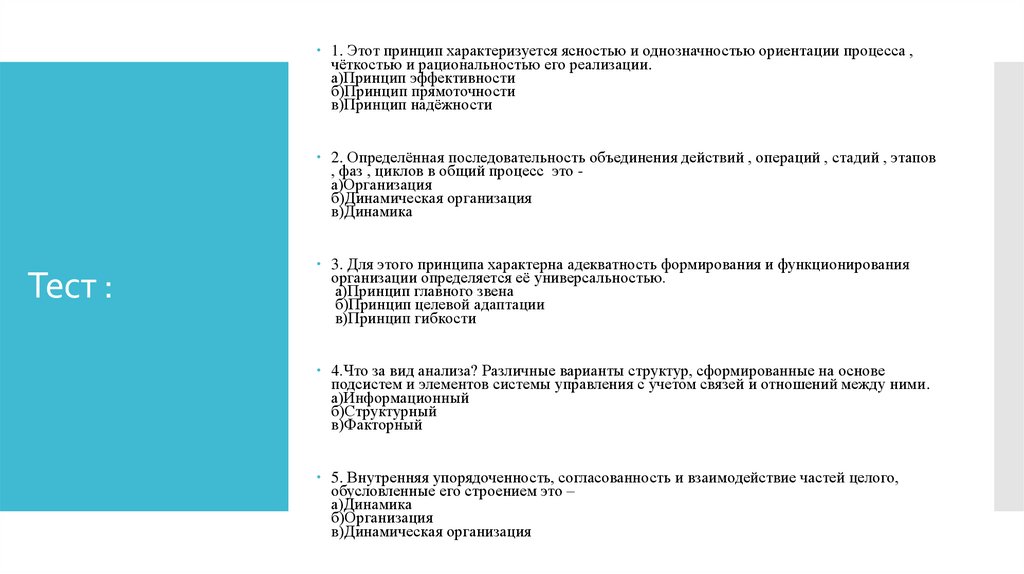 3. Для этого принципа характерна адекватность формирования и функционирования