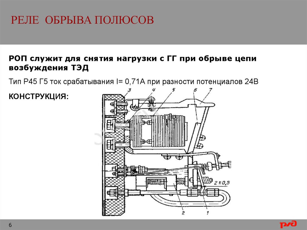 РЕЛЕ ОБРЫВА ПОЛЮСОВРОП служит для снятия нагрузки с ГГ при обрыве цепи