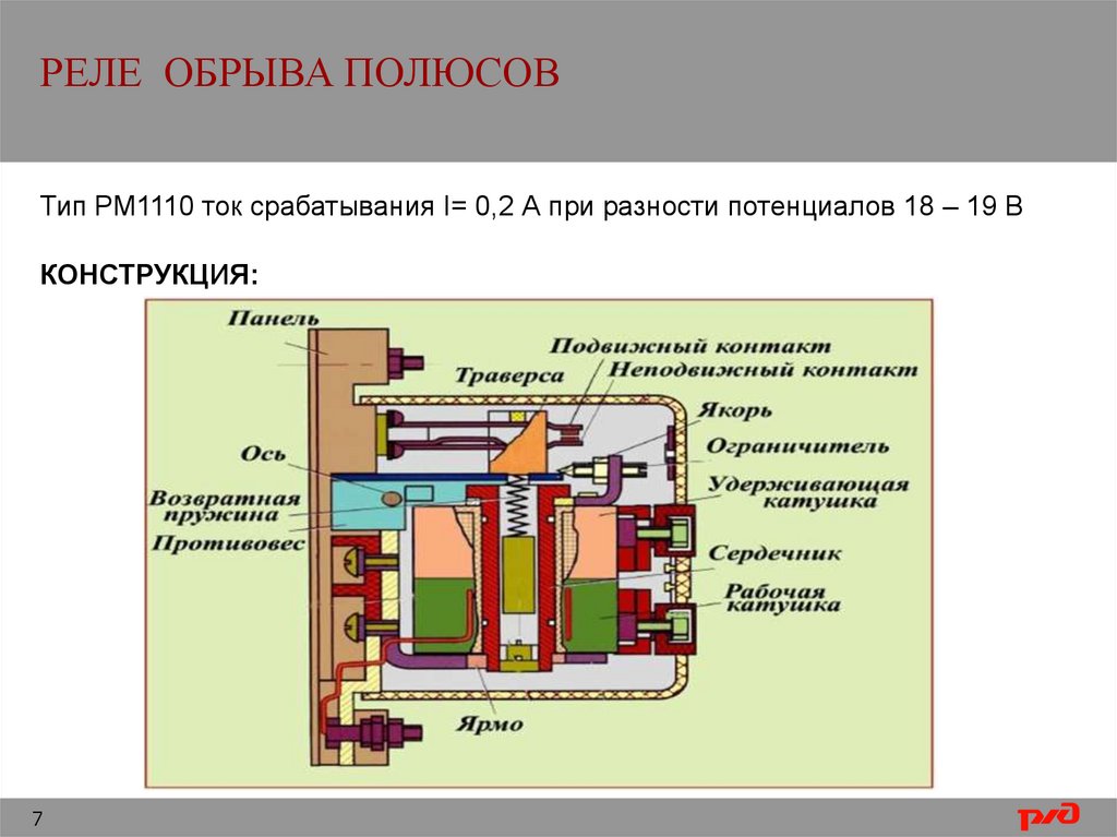РЕЛЕ ОБРЫВА ПОЛЮСОВТип РМ1110 ток срабатывания I= 0,2 А при разности потенциалов 18 – 19 В