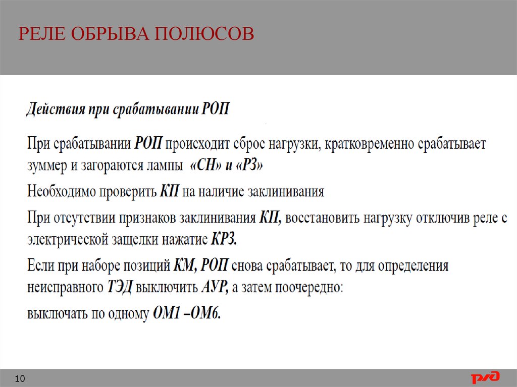 РЕЛЕ ОБРЫВА ПОЛЮСОВ10