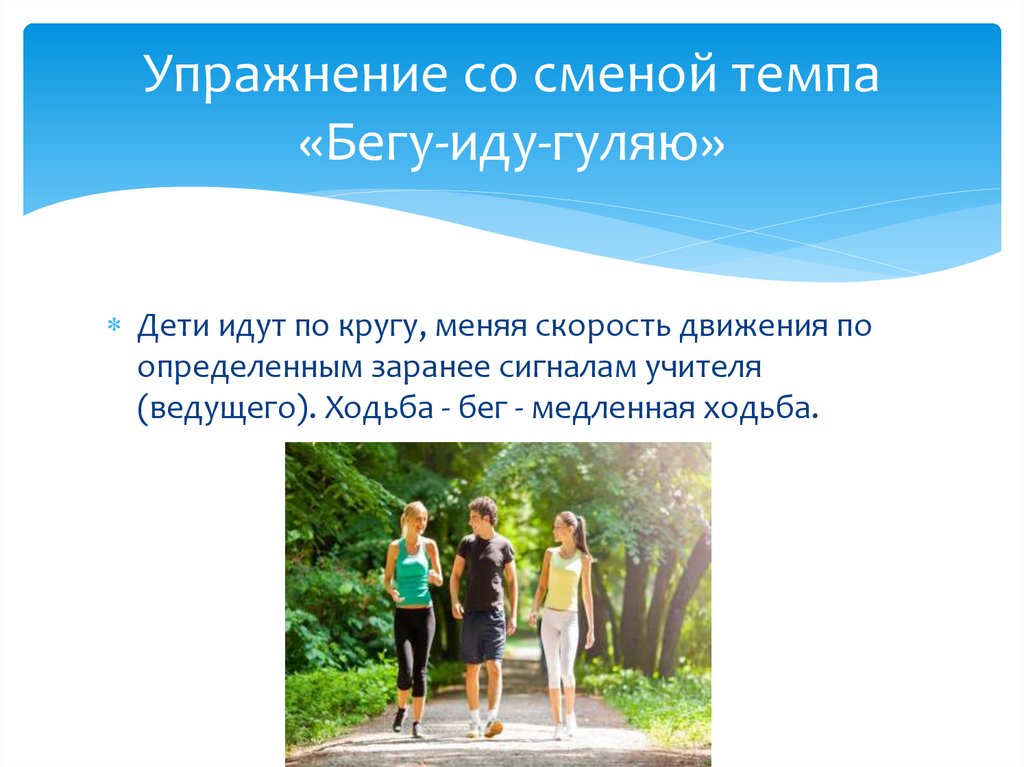 Упражнение со сменой темпа«Бегу-иду-гуляю»