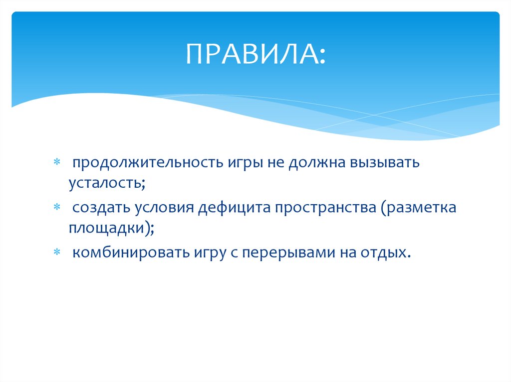 ПРАВИЛА:продолжительность игры не должна вызывать