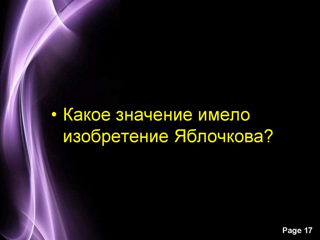 • Какое значение имелоизобретение Яблочкова?