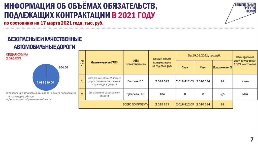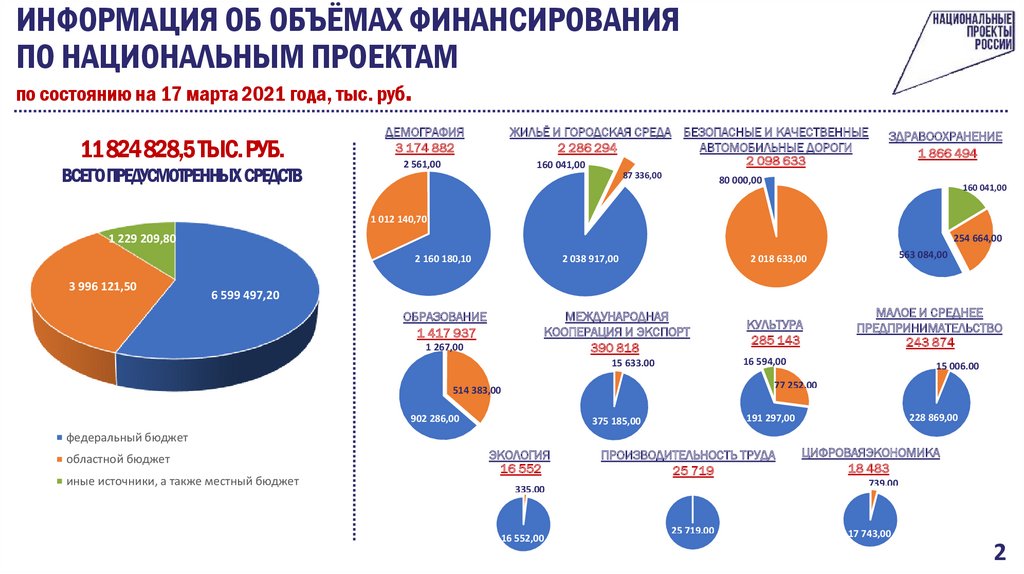 ИНФОРМАЦИЯ ОБ ОБЪЁМАХ ФИНАНСИРОВАНИЯПО НАЦИОНАЛЬНЫМ ПРОЕКТАМ