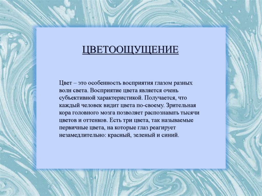 ЦВЕТООЩУЩЕНИЕЦвет – это особенность восприятия глазом разных