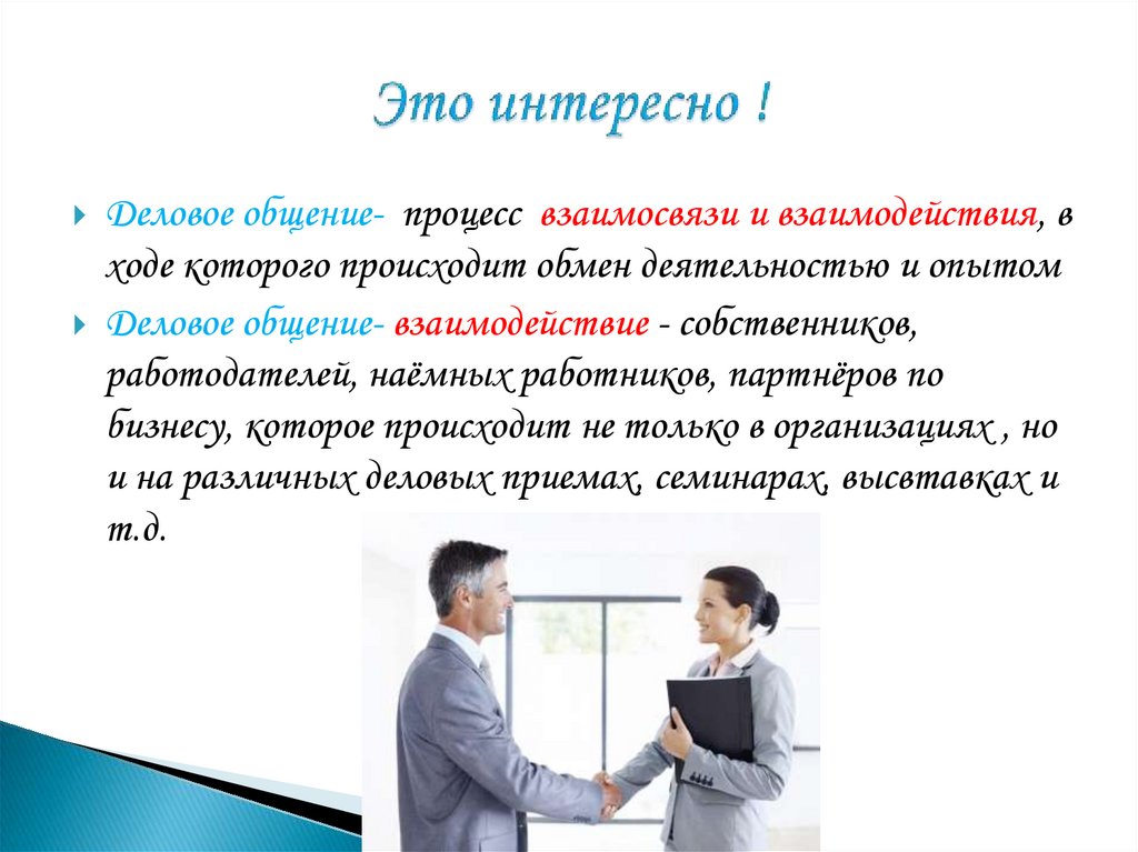 Деловое общение- процесс взаимосвязи и взаимодействия, входе которого происходит обмен деятельностью и опытом