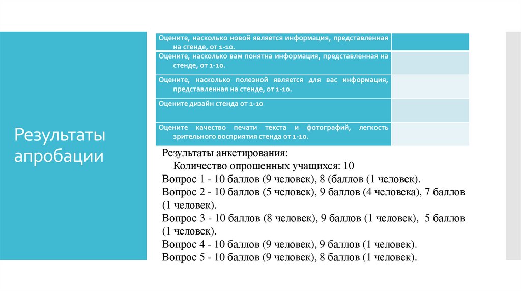 Оцените, насколько новой является информация, представленнаяна стенде, от 1-10.