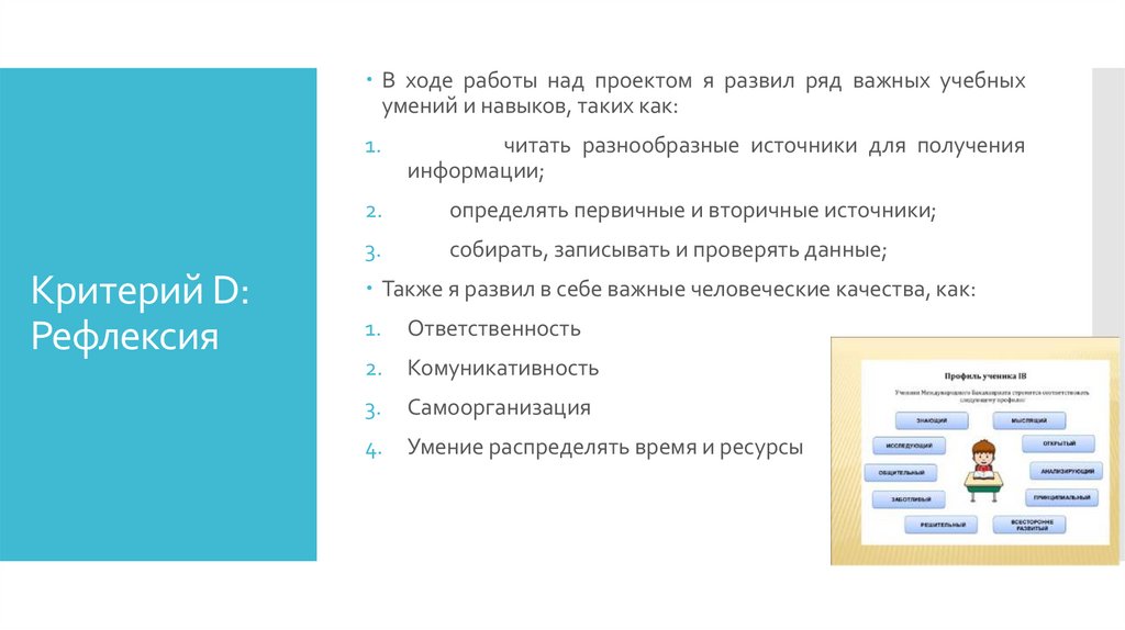 В ходе работы над проектом я развил ряд важных учебныхумений и навыков, таких как: