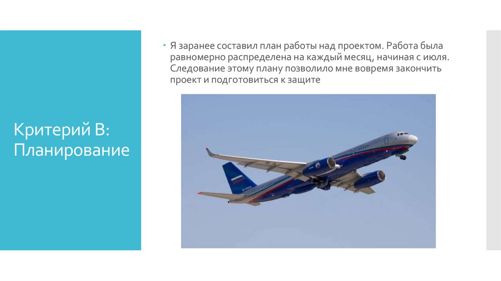 Я заранее составил план работы над проектом. Работа быларавномерно распределена на каждый месяц, начиная с июля.