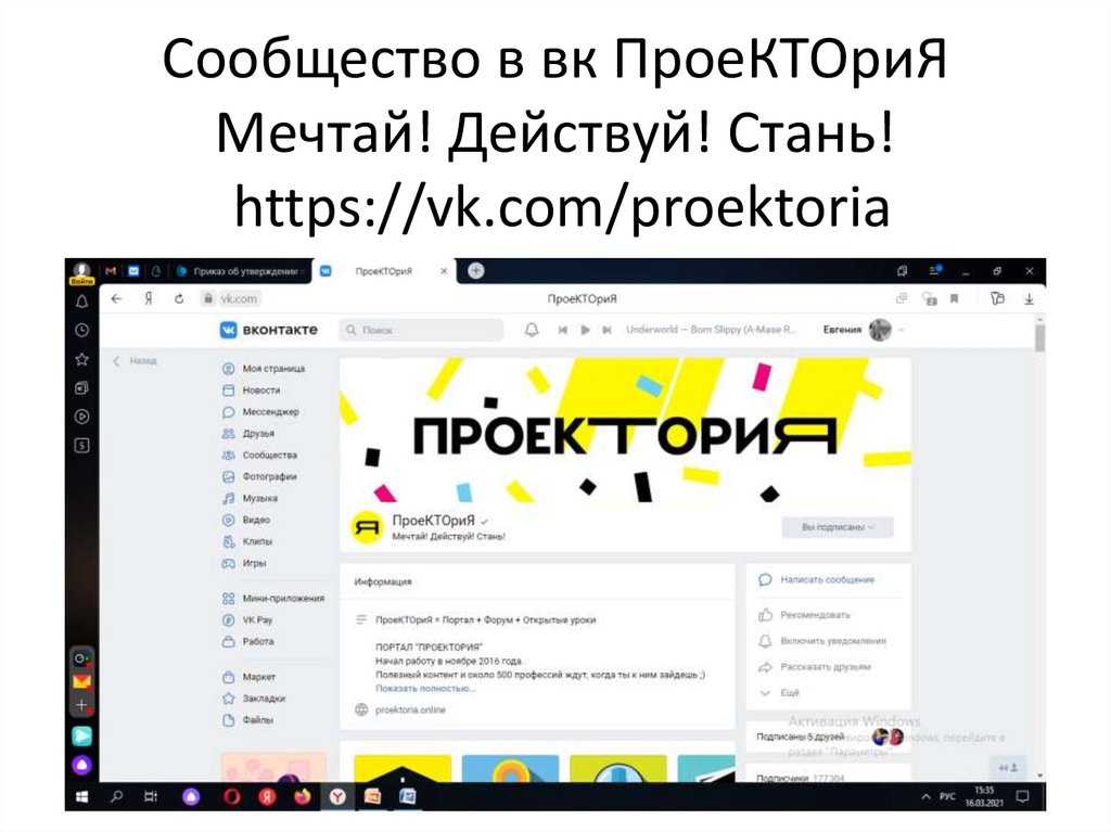 Сообщество в вк ПроеКТОриЯМечтай! Действуй! Стань!