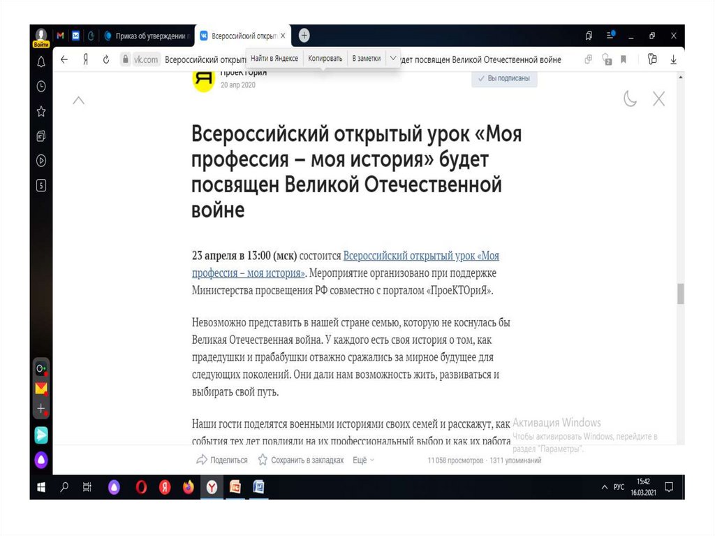 Всероссийские открытые урокиВ режиме интернет-трансляции проводятся