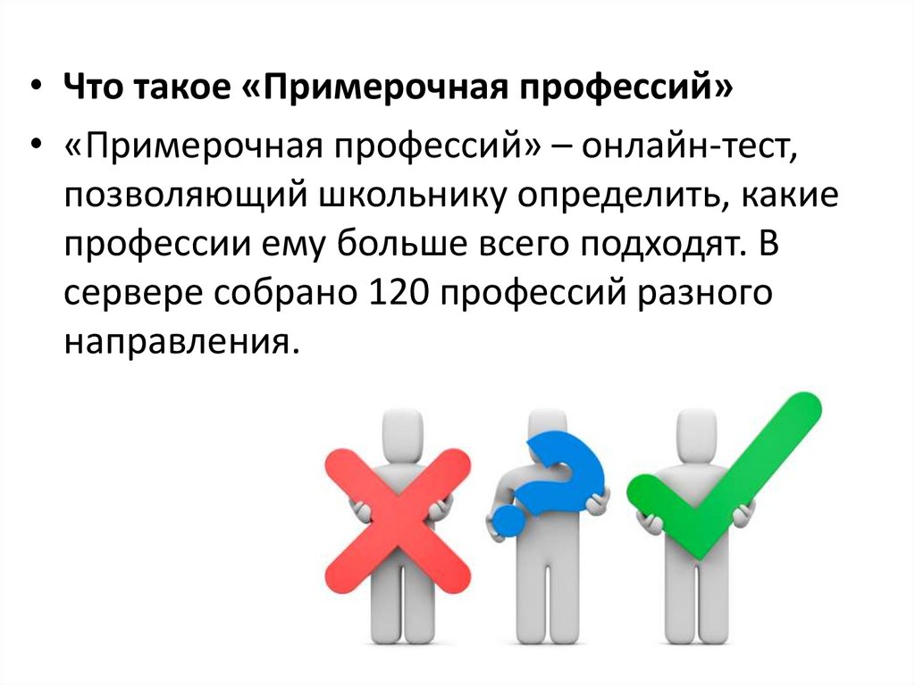 • Что такое «Примерочная профессий»• «Примерочная профессий» – онлайн-тест,