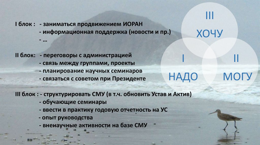 IIII блок : - заниматься продвижением ИОРАН