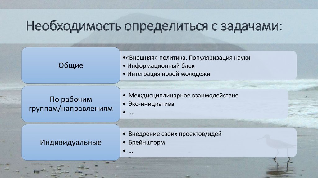 Необходимость определиться с задачами:Общие