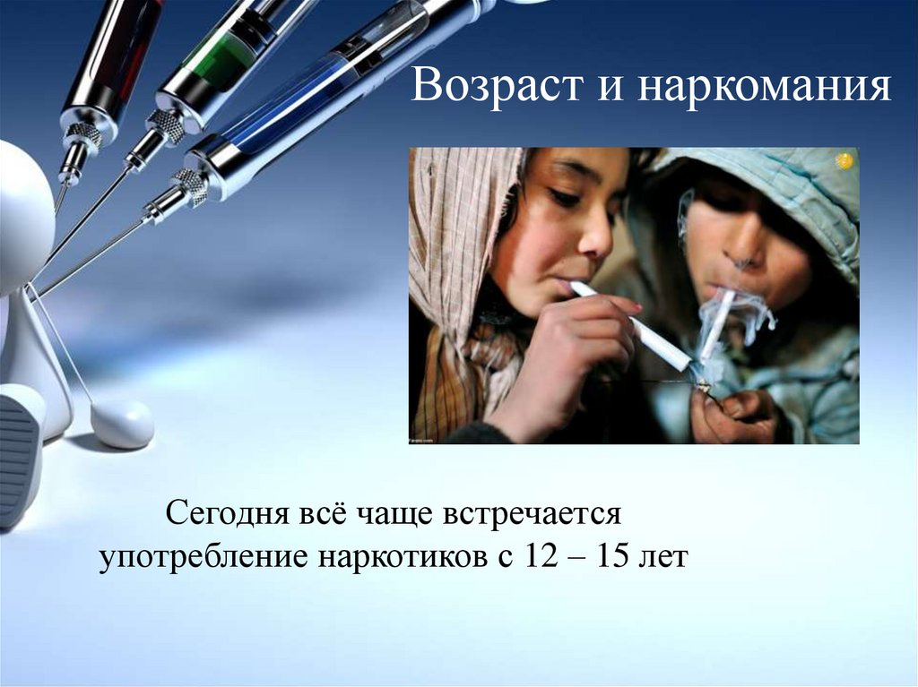 Возраст и наркоманияСегодня всё чаще встречается