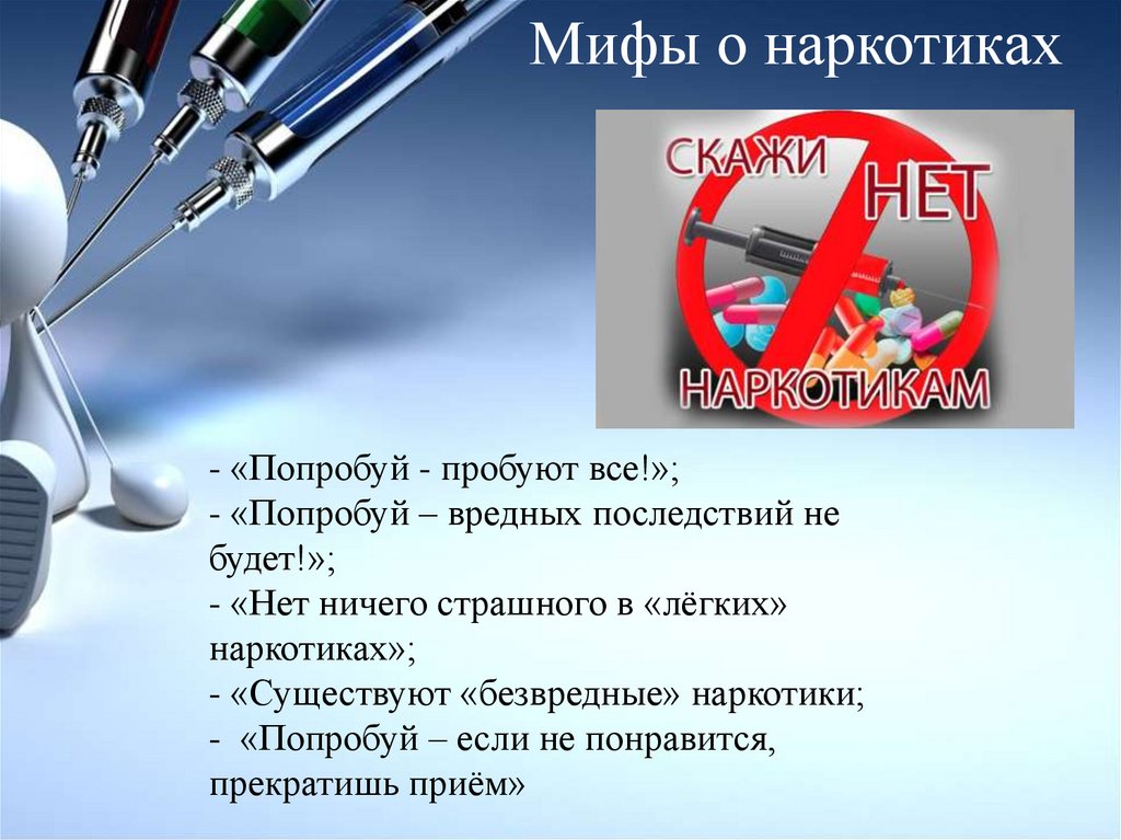 Мифы о наркотиках- «Попробуй - пробуют все!»;