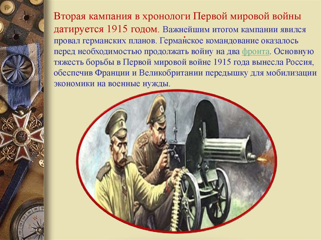 Вторая кампания в хронологи Первой мировой войныдатируется 1915 годом. Важнейшим