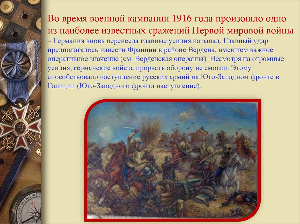Во время военной кампании 1916 года произошло одноиз наиболее известных сражений Первой мировой войны