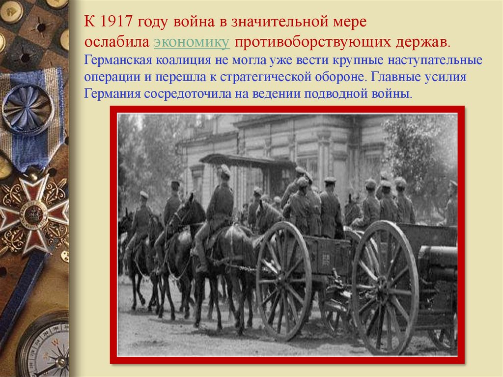К 1917 году война в значительной мереослабила экономику противоборствующих держав.