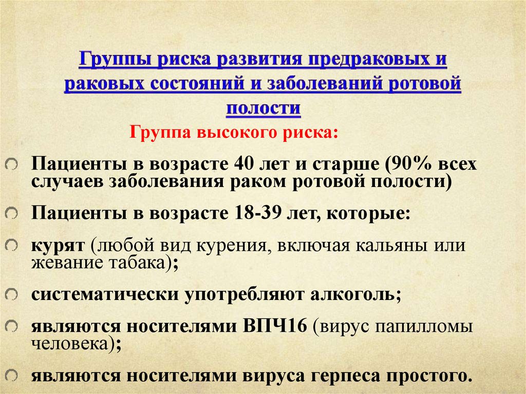 Риск развития рака полости рта у мужчин в 4-6 раз