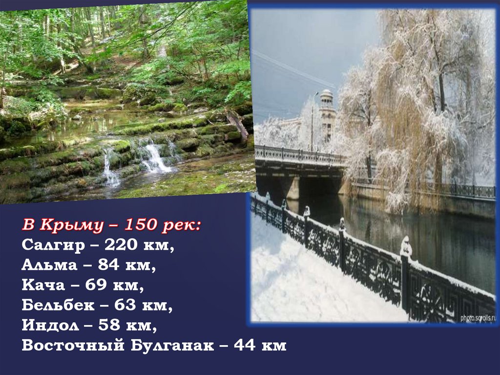Салгир – 220 км,Альма – 84 км,