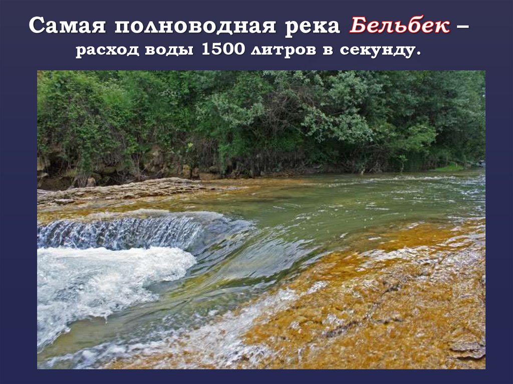 Самая полноводная рекарасход воды 1500 литров в секунду.