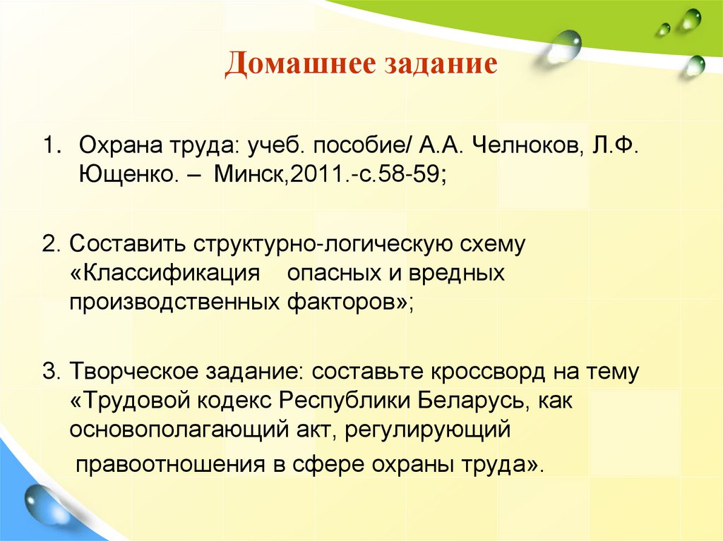 Домашнее задание1. Охрана труда: учеб. пособие/ А.А. Челноков, Л.Ф.