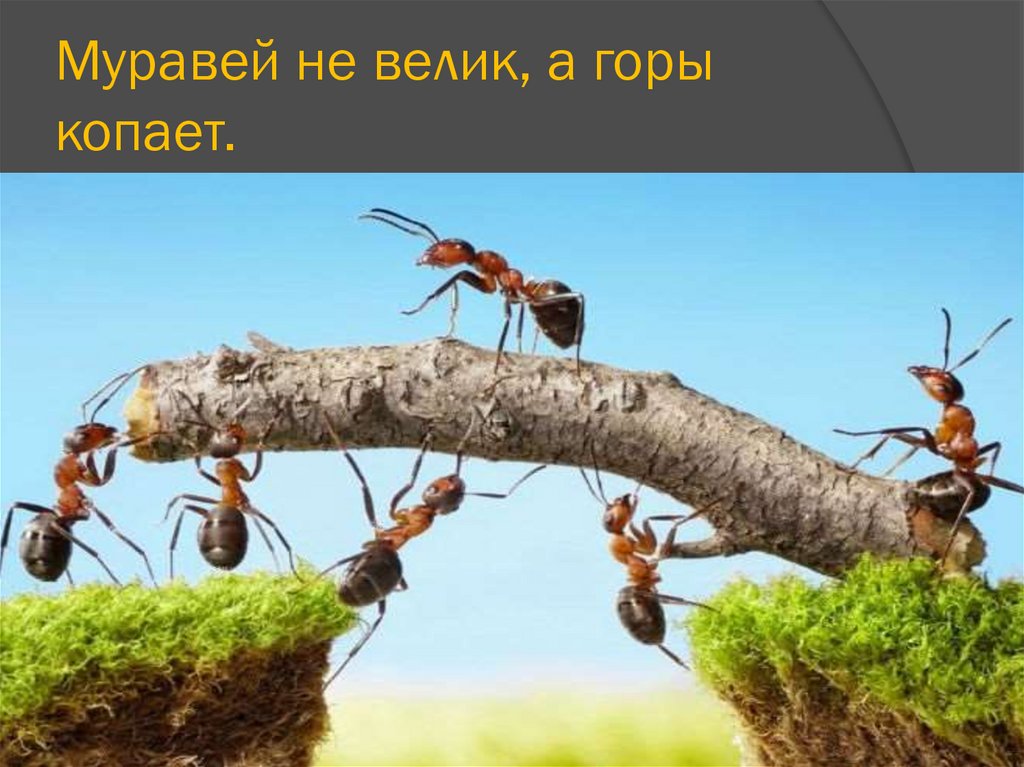 Муравей не велик, а горы