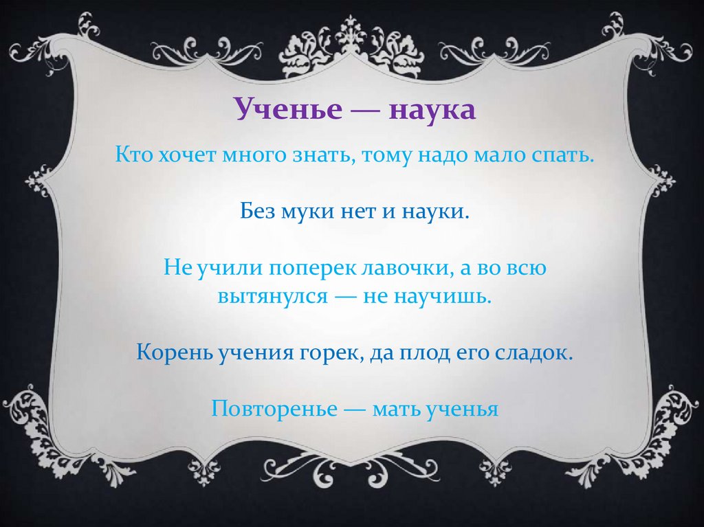 Ученье — наукаКто хочет много знать, тому надо мало спать.