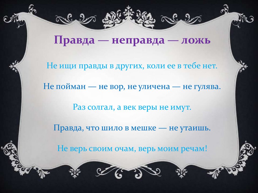 Правда — неправда — ложьНе ищи правды в других, коли ее в тебе нет.