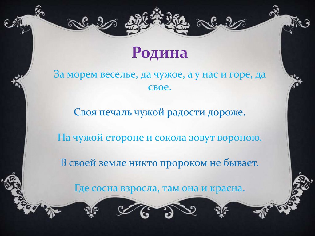 РодинаЗа морем веселье, да чужое, а у нас и горе, да