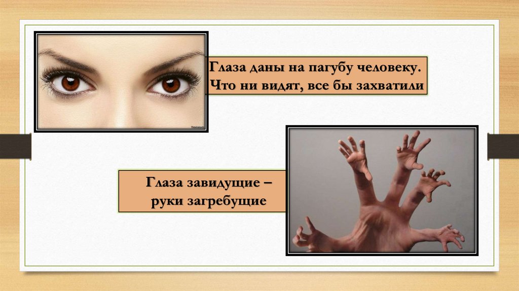 Глаза даны на пагубу человеку.Что ни видят, все бы захватили