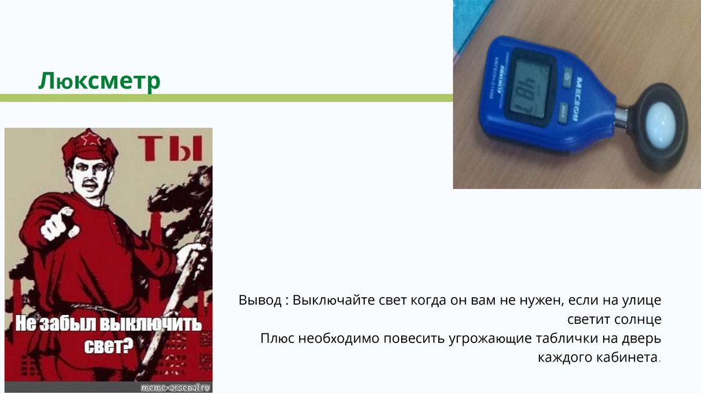 ЛюксметрВывод : Выключайте свет когда он вам не нужен, если на улице