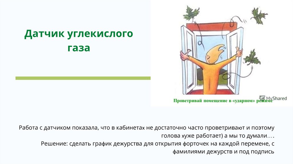 Работа с датчиком показала, что в кабинетах не достаточно часто проветривают и поэтому