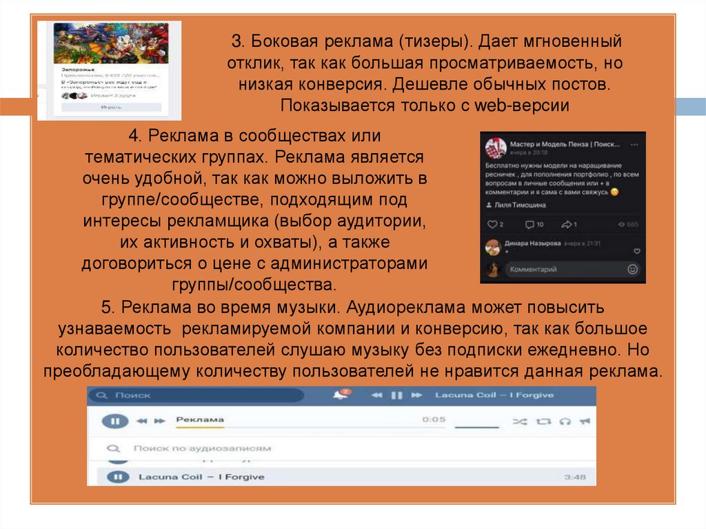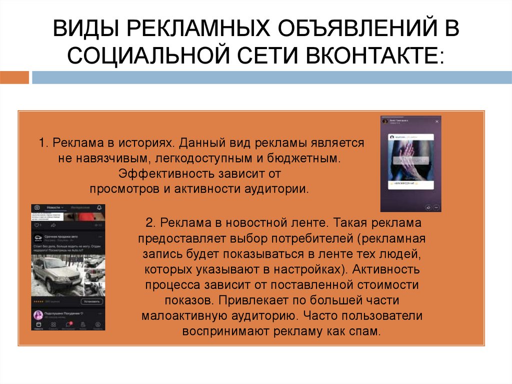ВИДЫ РЕКЛАМНЫХ ОБЪЯВЛЕНИЙ ВСОЦИАЛЬНОЙ СЕТИ ВКОНТАКТЕ: