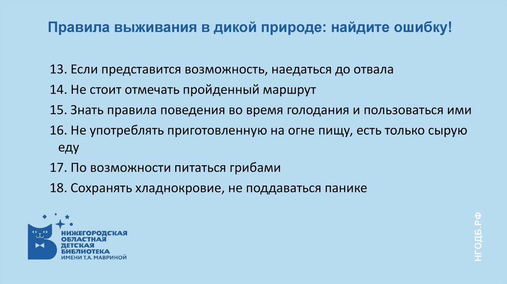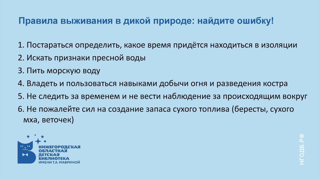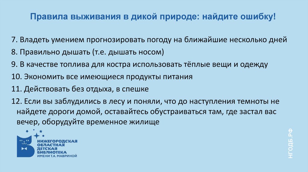 Правила выживания в дикой природе: найдите ошибку!НГОДБ.РФ