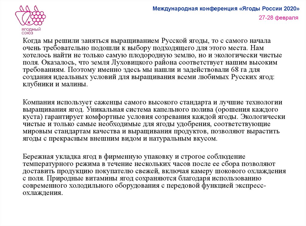 Международная конференция «Ягоды России 2020»27-28 февраля