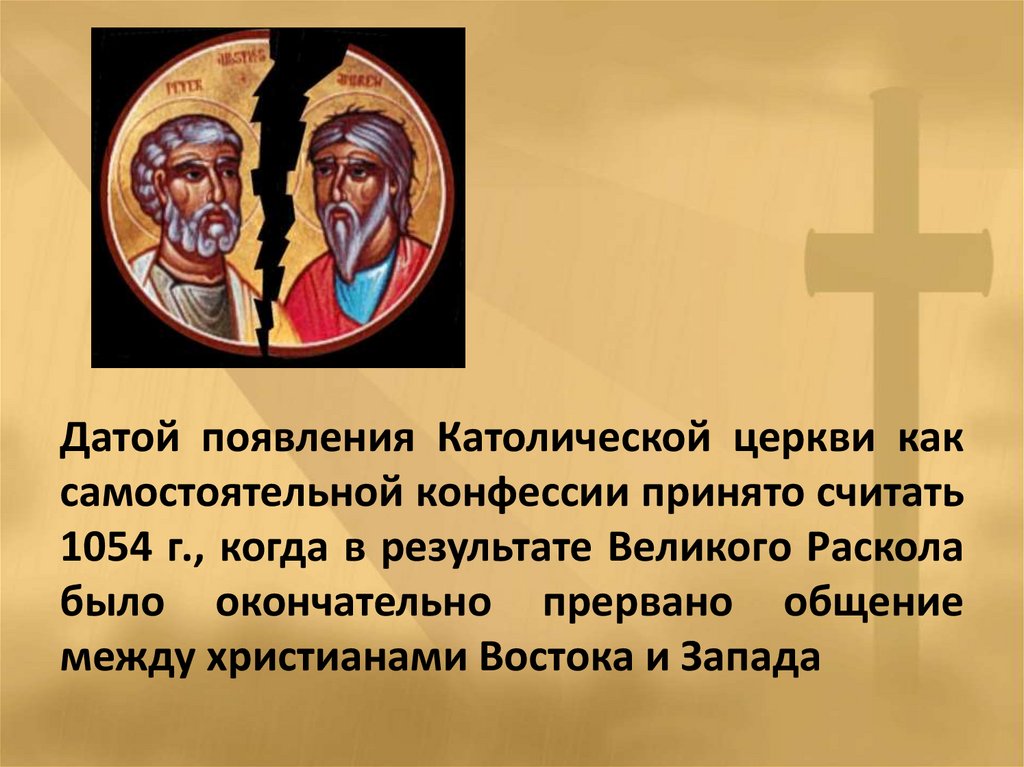 Датой появления Католической церкви каксамостоятельной конфессии принято считать